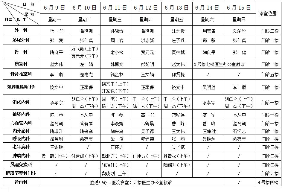 普通门诊排班表